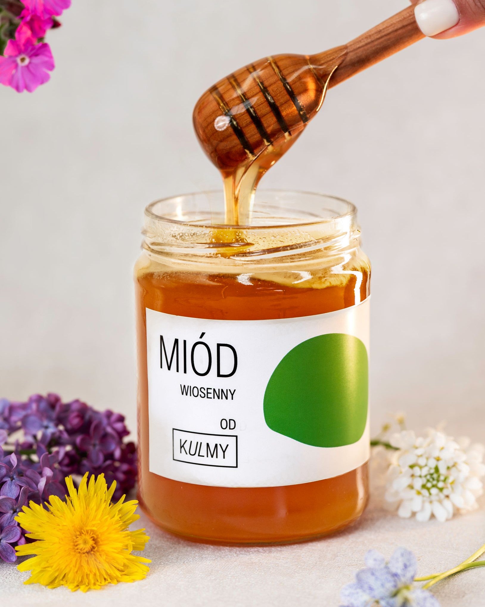 MIÓD WIOSENNY OD KULMY ŚWIEŻY TEGOROCZNY ROZLEW! TEN MIÓD NIE POJAWIA SIĘ KAŻDEJ WIOSNY – warto było na niego czekać! * Pierwszy miód sezonu, z wczesnowiosennych kwiatów. * Z nektaru roślin kwitnących już w marcu i kwietniu: mniszków, klonów, wiśni, fiołków. * Zbierany tylko wtedy, gdy natura pozwoli – tak wyczekiwany przez wielu. * Wielokwiatowy, złoty, bogaty w smaku i aromatyczny. * Koi, wzmacnia i wyjątkowo smakuje. Mamy co świętować! Miód wiosenny to nasz pszczeli złoty graal – pierwszy miód w sezonie. Pojawia się tylko wtedy, gdy wszystko – pogoda, kwitnienie i siła pasieki – złoży się tak, jak natura chciała. Powstały z nektaru pierwszych kwiatów i drzew, które budzą się z zimowego snu. W skrócie – miód wiosenny to produkt, w którym zamknięta jest esencja budzącej się do życia przyrody. CO SPRAWIA, ŻE MIÓD WIOSENNY JEST TAK WYJĄTKOWY Tu chodzi o coś więcej niż tylko, że to rzadki i niełatwy do uzyskania produkt. Miód wiosenny jest jak ten moment, w którym po raz pierwszy czujesz wiosnę. Powstaje z nektaru roślin kwitnących jeszcze zanim wszystko w pełni się rozwinie – pszczoły pracują z tym, co przynosi marcowe i kwietniowe słońce. Miód wiosenny jest absolutnie nie do powtórzenia w innych porach roku. Złoty, aromatyczny, niemal „wiosennie świeży” – to opowieść o początku wiosny zamknięta w słoiku. CO KRYJE SIĘ W KAŻDYM SŁOIKU Miód wielokwiatowy z pierwszych wiosennych kwitnących roślin. W zależności od pogody może znaleźć się w nim nektar z: mniszka lekarskiego, wierzby, wiśni, czereśni, pierwiosnków, fiołków, a czasem nawet z rzeżuchy łąkowej, forsycji i innych wczesnowiosennych roślin. JAK SMAKUJE MIÓD WIOSENNY Jest bogaty, kwiatowy i „taki nie za słodki”. Mamy tu zgraną harmonię różnych smaków wiosny. Klarowny i złocisty jak wiosenne słońce – pysznie smakuje zarówno w herbacie, jak i na kromce czy z twarogiem. Wyczujesz w nim świeżość, kwiatową miękkość i coś bardzo… ulotnego. Może dlatego tak za nim tęskniliśmy?