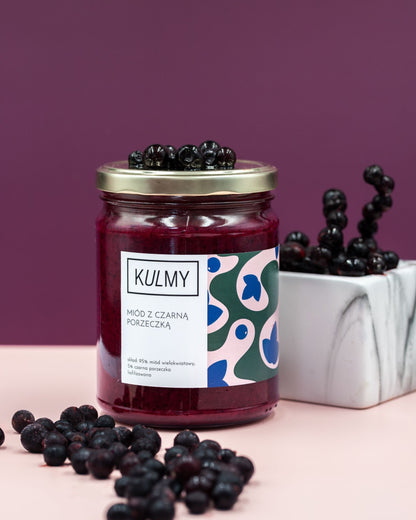 MIÓD Z CZARNĄ PORZECZKĄ OD KULMY Czarne porzeczki, tak jak i maliny, są z nami od dzieciństwa. Zapewne większość z nas jadła je w różnej formie. Ze wszystkich porzeczek (jest jeszcze czerwona i biała), czarna ma największe owoce, o ciemnej, matowej skórce. Naszym zdaniem ma też najbardziej głęboki i wytrawny smak, który idealnie paruje się z miodem. Z tego połączenia wyszedł przepyszny miód z czarną porzeczką. JAK SMAKUJE W smaku miód z czarną porzeczką jest bardzo wyważony, na czym nam zależało. Kwaskowe nuty – niezbity dowód na obecność witaminy C, są bardzo delikatne, zdecydowanie jest to smak dla każdego. Jeśli ktoś chciałby przekonać do tego miodu dzieci, to jest duża szansa na sukces! Konsystencję ma miękką, ale raczej zwartą, wypełnioną owocowymi drobinkami (tak, pestki też bywają). Na pewno do spróbowania zachęca piękny głęboki kolor, jak w sorbecie porzeczkowym. DLA KOGO To jest nasz pewniak – zrównoważony smak, miodowość i wyraźny smak owocu. Spokojnie można wybrać go na prezent, ale też obowiązkowa pozycja w pochmurne dni, gdy szukamy energii.
