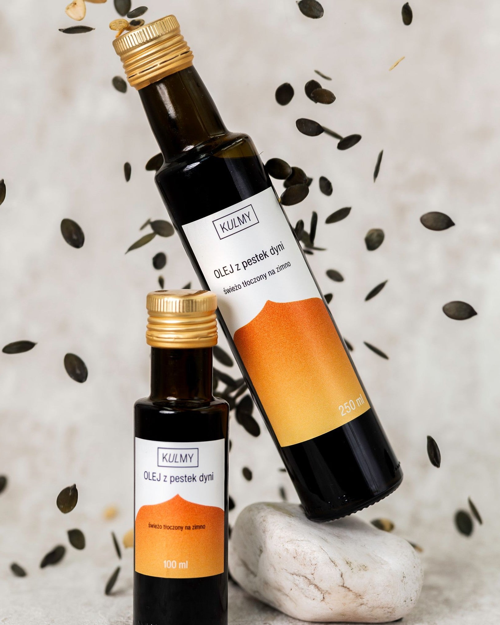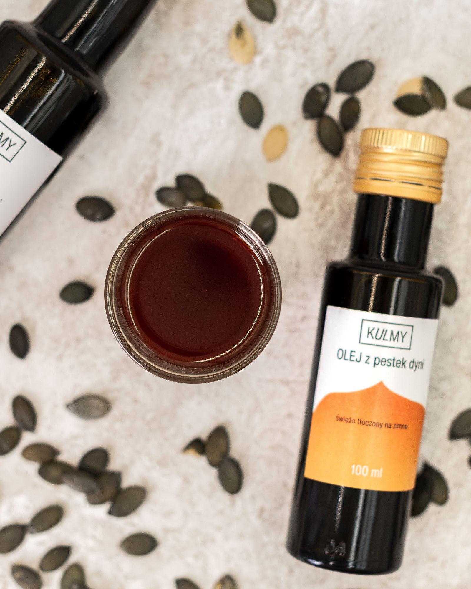 OLEJ Z PESTEK DYNI OD KULMY * Tłoczony na zimno, zachowuje pełnię swoich właściwości * Niefiltrowany i nierafinowany * Ciekawy smak, który przypadnie Ci do gustu. MOC ŚWIEŻEGO OLEJU Olej z pestek dyni to nie tylko kulinarny sztos. To też bardzo dobre źródło nienasyconych kwasów omega, które sprawią, że będziesz tryskać energią przez cały dzień. Świeże i nierafinowane oleje z pestek dyni dają Ci ogrom możliwości. To wspaniały smak, który nadaje potrawom genialny smak. To również pyszny dodatek do dobrego pieczywa. Z nim świeży chleb będzie smakować jak danie szefów kuchni. Poza tym to świetny sposób na podkręcenie trawienia.