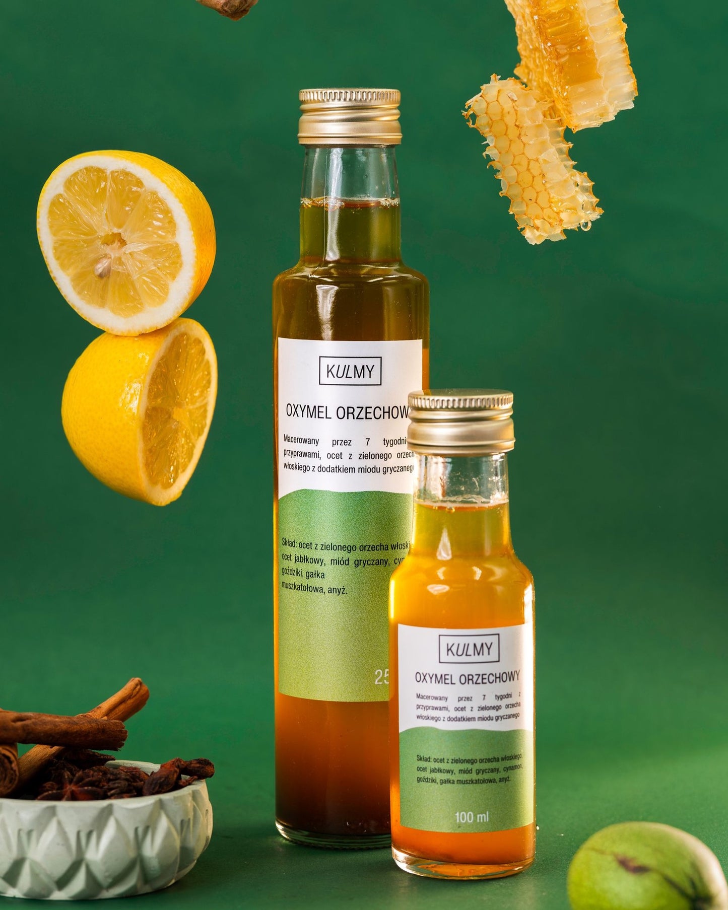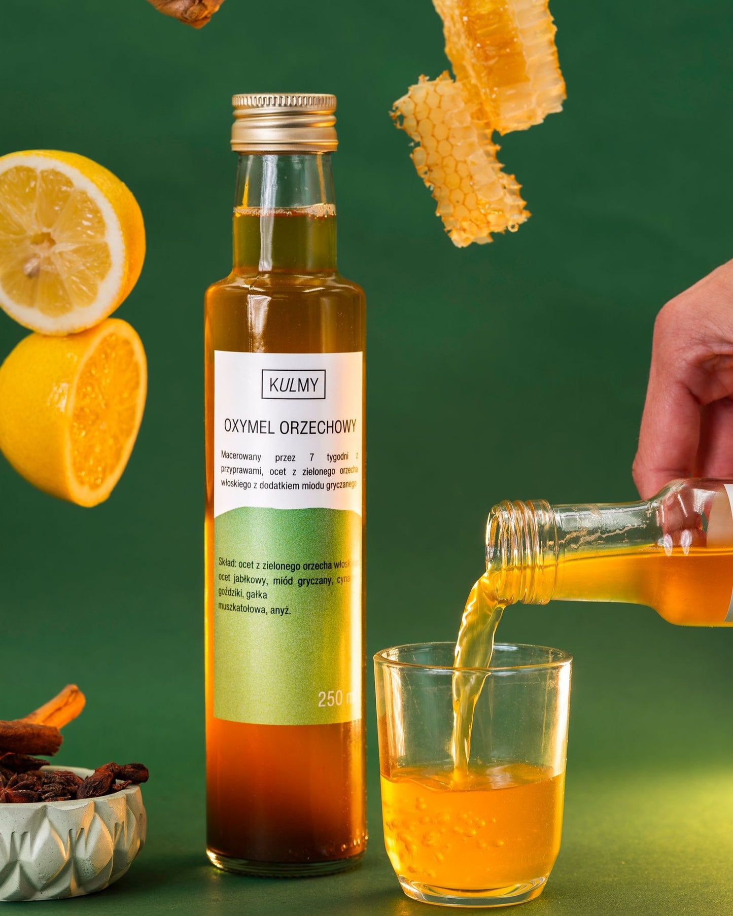 OXYMEL Z ZIELONEGO ORZECHA OD KULMY * idealny na zimowy czas, jako wsparcie dla całej rodziny * siła składników – dla układu trawiennego, odpornościowego i kondycji jelit * specjalna kompozycja na bazie octu z zielonego orzecha włoskiego i przypraw * dodatek najlepszego miodu gryczanego – głęboki smak i aromat * świetny jako alternatywa dla nalewki orzechowej DOBRY ZWYCZAJ Z OXYMELEM