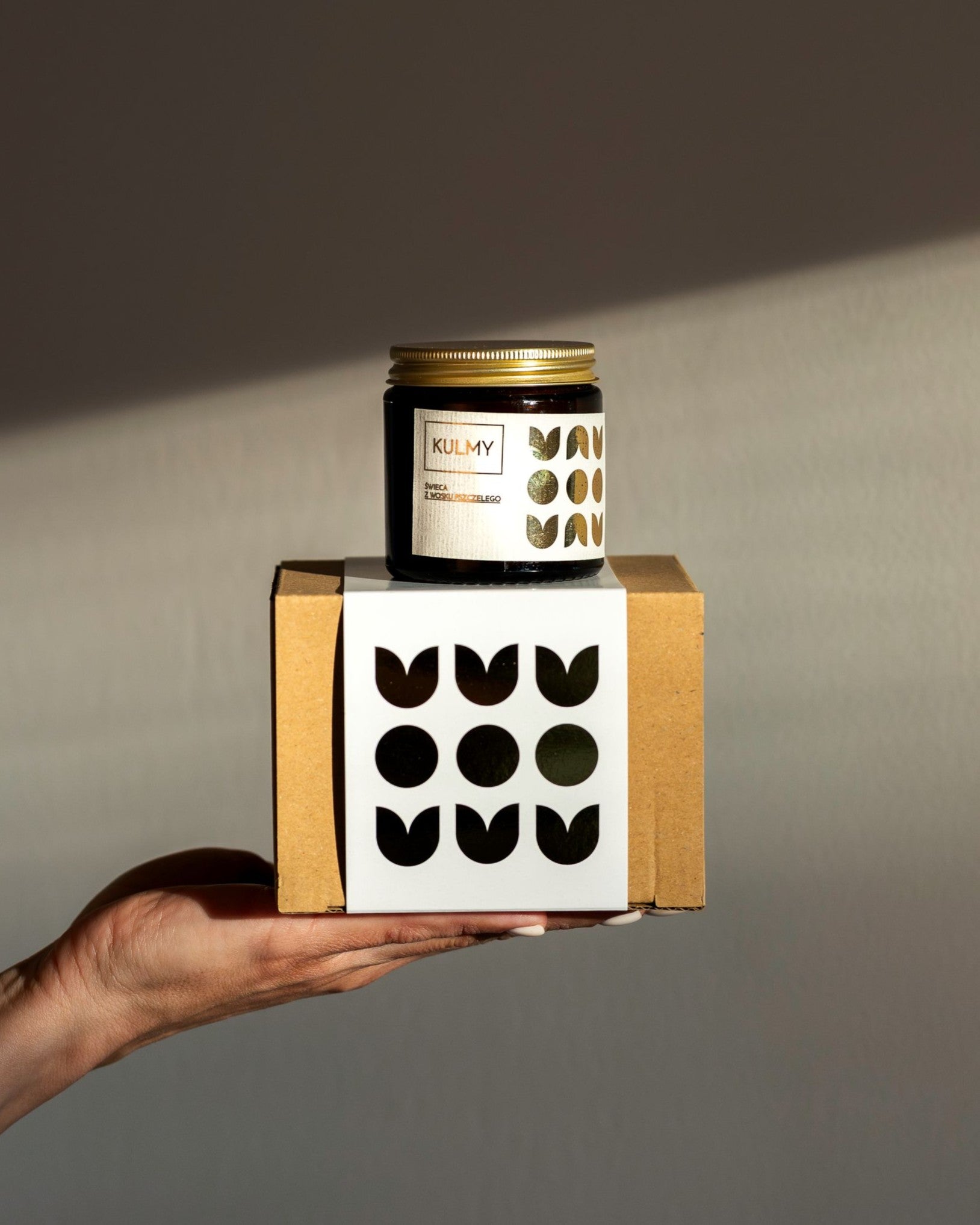 ŚWIECZKA Z WOSKU PSZCZELEGO OD KULMY Nasza świeca to naturalność, wyjątkowy zapach i prostota w najlepszym wydaniu! Do jej wykonania używamy wyłącznie tego, co dobre i sprawdzone: czysty wosk pszczeli, bawełniany knot i naturalne olejki eteryczne. Bez sztucznych dodatków, bez zbędnych kompromisów – dokładnie tak, jak lubimy najbardziej. Każdą świecę wylewamy ręcznie, porządnie, z uważnością. Żeby paliła się równo, pachniała i wyglądała tak, że można ją od razu wręczyć komuś (albo zachować dla siebie – i to też jest super!). MAŁE PRZYJEMNOŚCI W PREZENCIE Szukasz takiego podarunku, który sprawi wyjątkową przyjemność? Mamy to przemyślane. Każdą świecę pakujemy ręcznie, ze specjalnymi dodatkami – tak, żeby od razu nadawała się do wręczenia. Estetycznie, starannie i z myślą o tym, kto ją otrzyma.