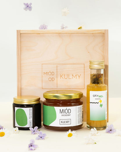 ZESTAW WIOSENNY OD KULMY Miód z pierwszych wiosennych kwiatów, oxymel pachnący kwitnącą łąką i pszczela świeczka, która koi zmysły. Chcesz zaopatrzyć się w miłe dla zmysłów produkty, które aż buzują wiosną? Łap specjalny wiosenny zestaw prosto od Kulmy.